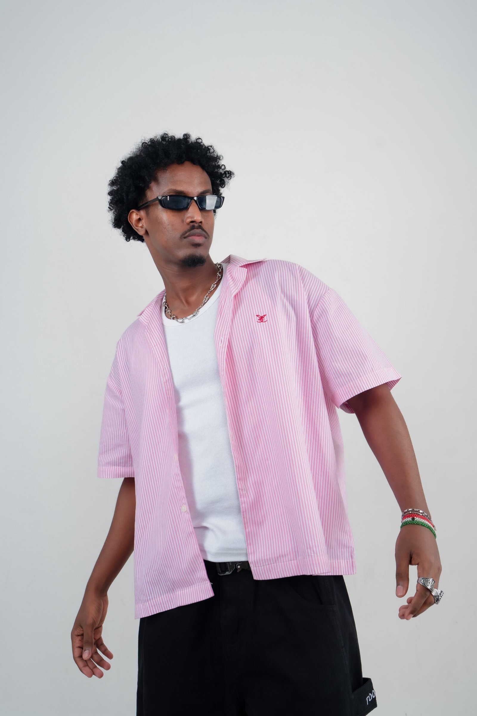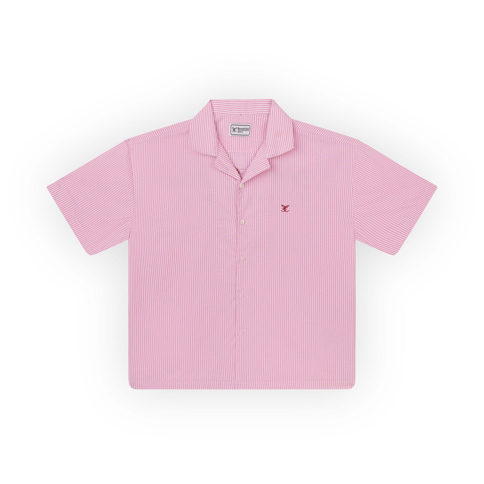 The Pinkfire Boxy Embroidery Shirt is a relaxed, oversized unisex shirt made from premium 100% cotton stripe fabric (120 GSM). Featuring a Cuban collar, soft drape, and bold chest embroidery, it brings effortless street-style to everyday casual looks.